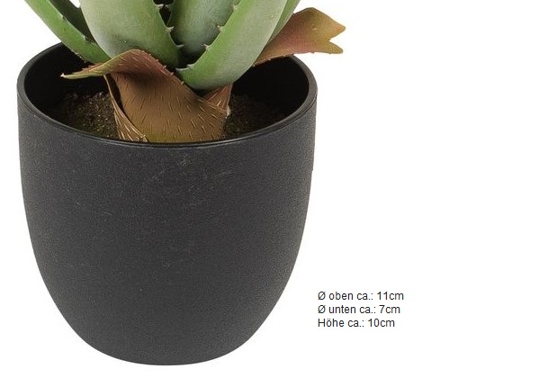 Die künstliche Aloe im Topf in der Farbe grün ist 38cm hoch.