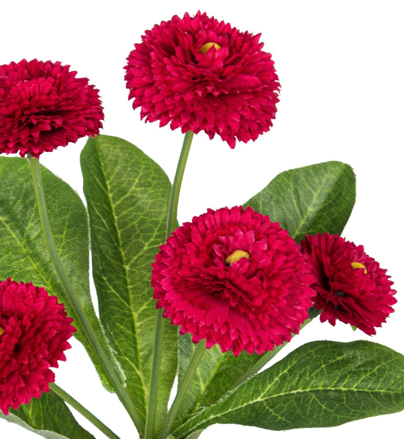 Der künstliche Bellisbund in der Farbe cerise wurde mit viel Liebe zum Detail nachgearbeitet und ist ein Blickfang in jeder Frühlingsdekoration. Er zaubert eine fröhliche und lebhafte Atmosphäre in alle Räume, ohne Gießen oder aufwendige Pflege.