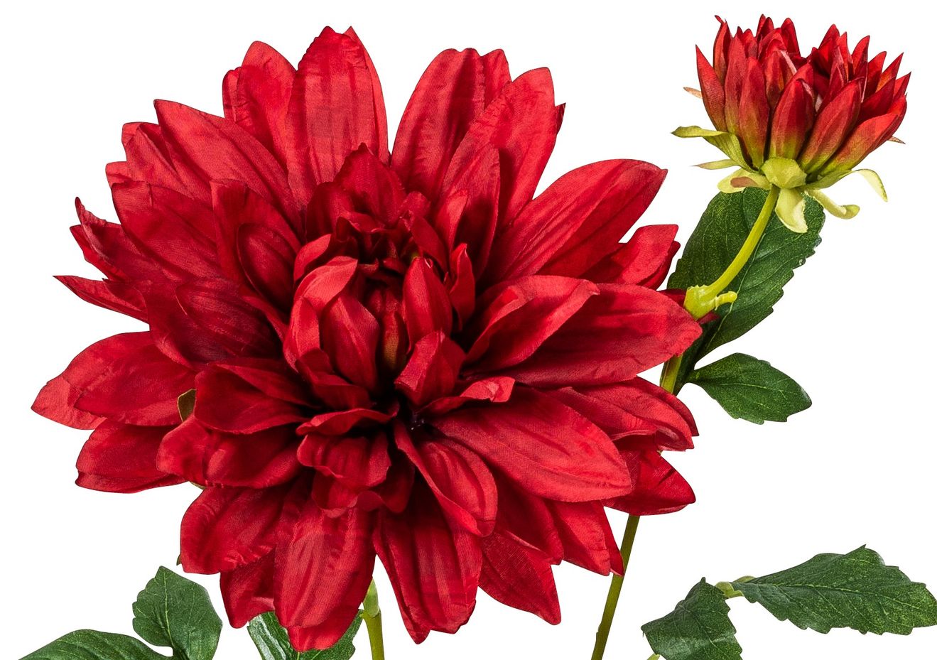 Erleben Sie die Schönheit und Anmut unserer künstlichen Dahlie mit Knospe mit einem Blütendurchmesser von ca. 17,5cm in einem kräftigen Rot. Diese 62cm hohe Blume ist nicht nur ein optisches Highlight, sondern auch die ideale Wahl für alle, die den Charme frischer Blumen schätzen, jedoch wenig Zeit für deren Pflege haben.