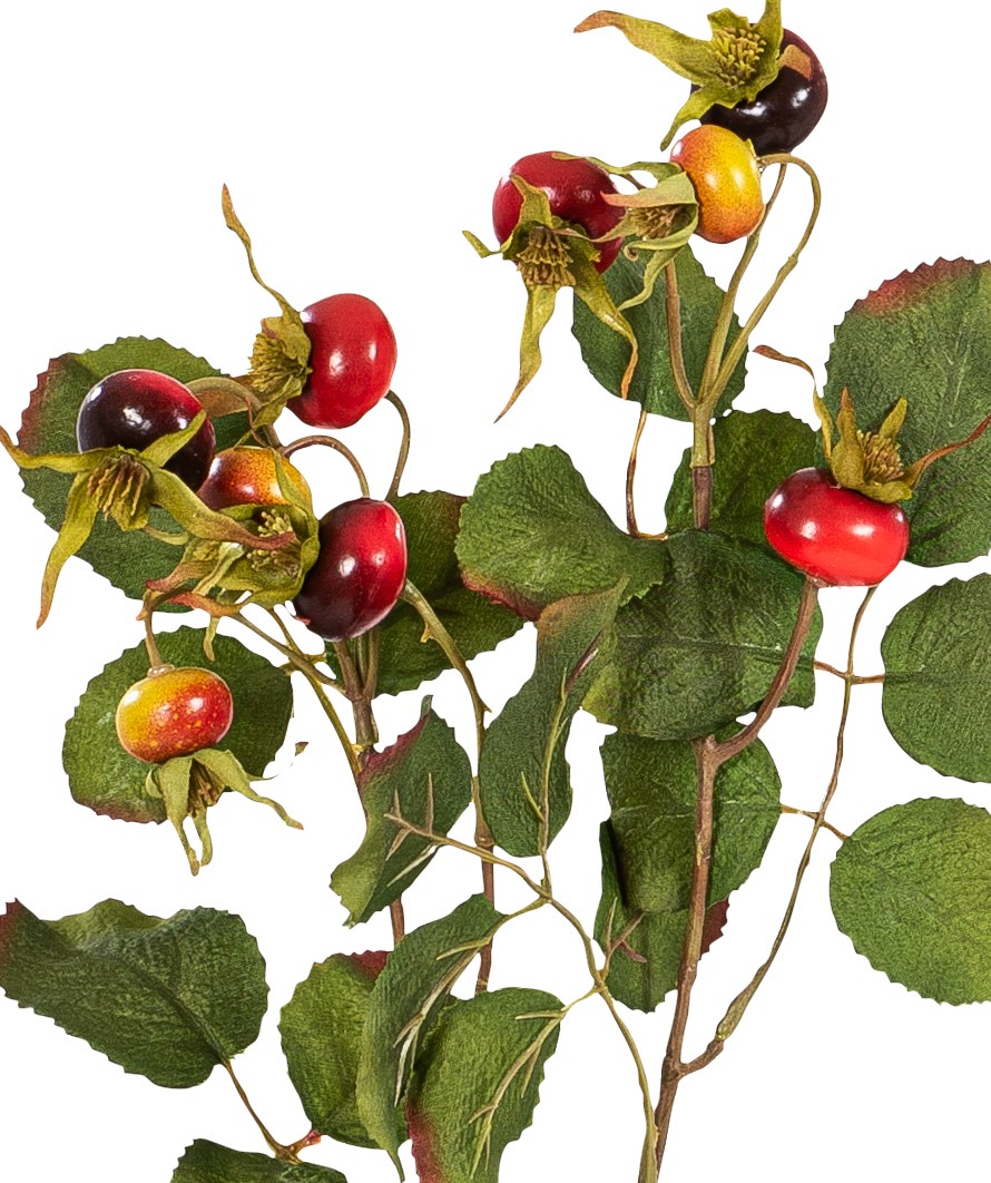 Künstliche Früchte- und Beerenzweige, wie unser 58cm langer Hagebuttenzweig in der Farbe rot, sind unverzichtbare Elemente in der floralen Dekoration, wenn es um moderne Innenraumgestaltung geht.