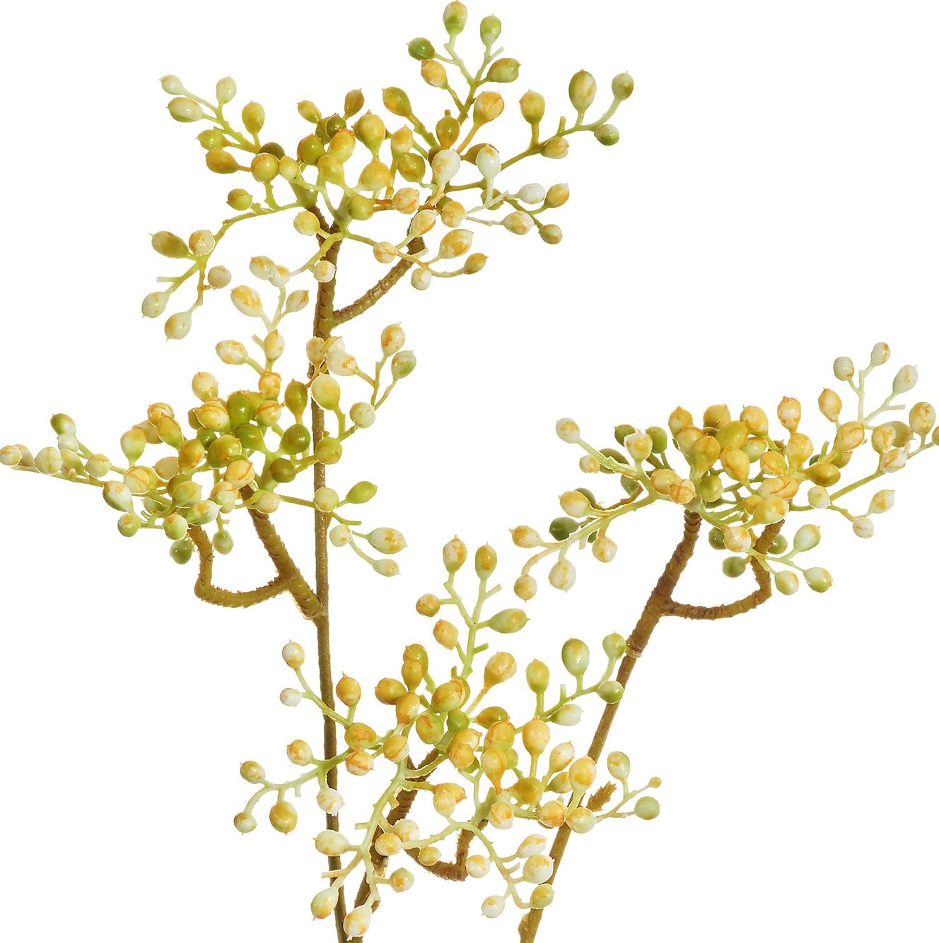 Künstliche Früchte- und Beerenzweige, wie unser 63cm langer Holunderzweig in der Farbe gelb, sind unverzichtbare Elemente in der floralen Dekoration, wenn es um moderne Innenraumgestaltung geht.