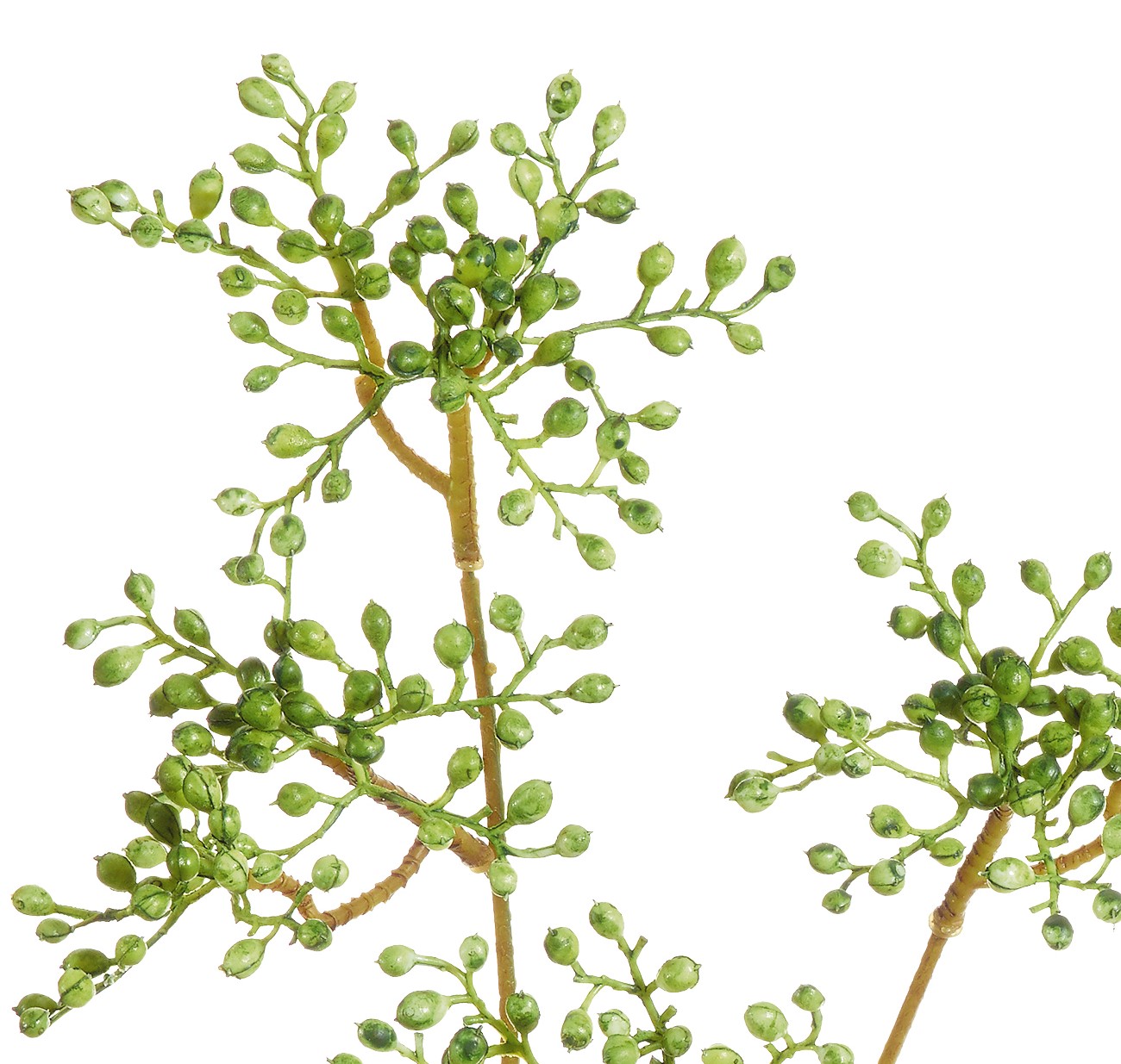 Künstliche Früchte- und Beerenzweige, wie unser 63cm langer Holunderzweig in der Farbe grün, sind unverzichtbare Elemente in der floralen Dekoration, wenn es um moderne Innenraumgestaltung geht.