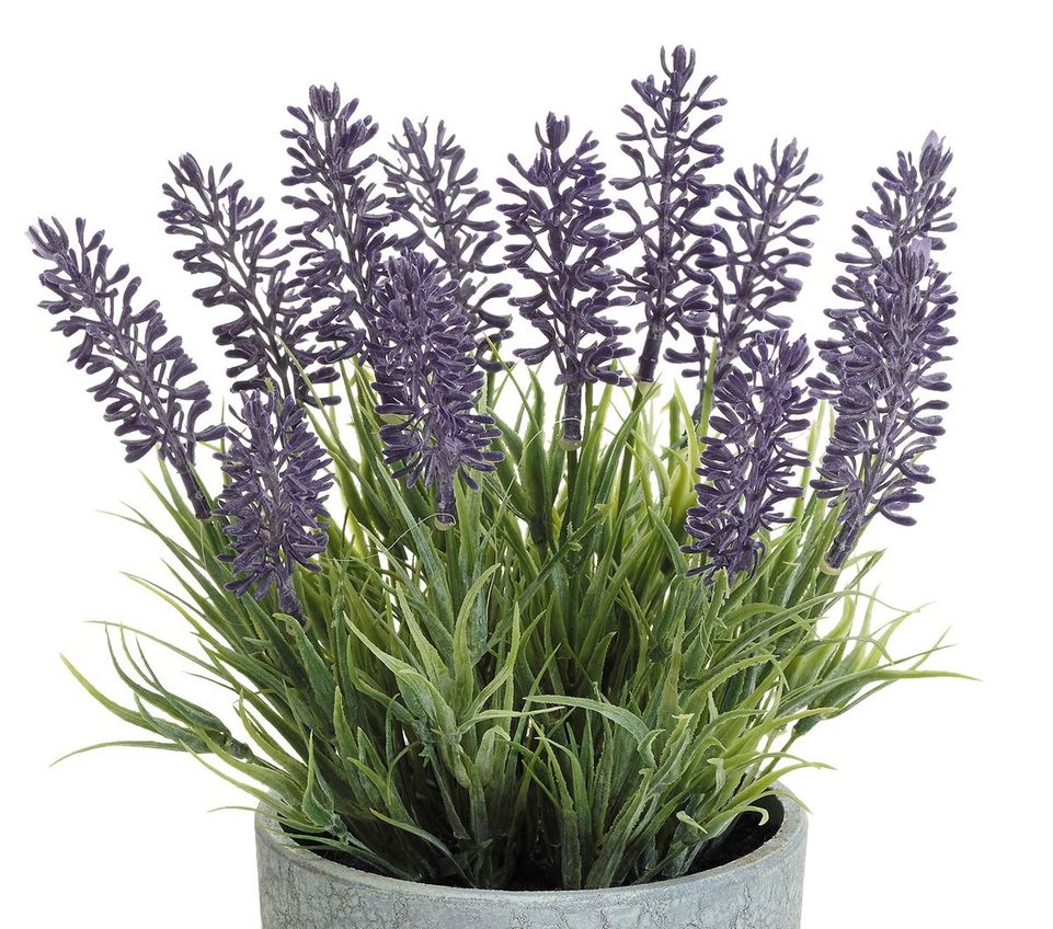 Der künstliche Lavendel im Topf hat 12 Blüten und ist 25cm hoch.