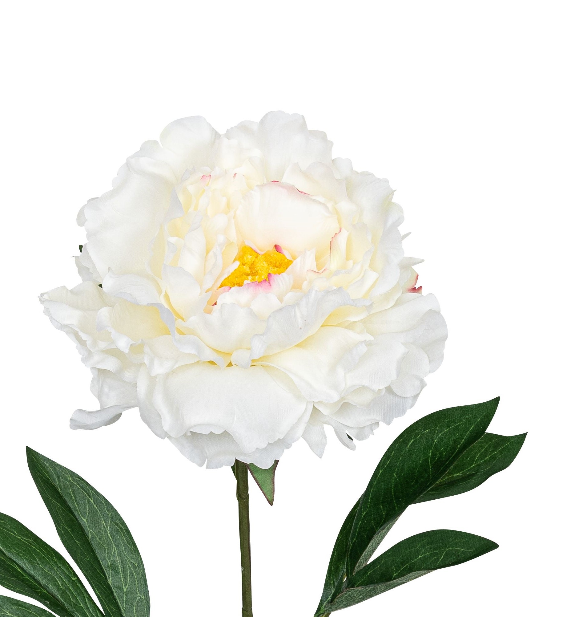 Die Päonie RE in der Farbe Elfenbein ist 80cm lang, hat einen Blütenkopfdurchmesser von ca. 15cm und eignet sich hervorragend für Dekorationen im Innenbereich.