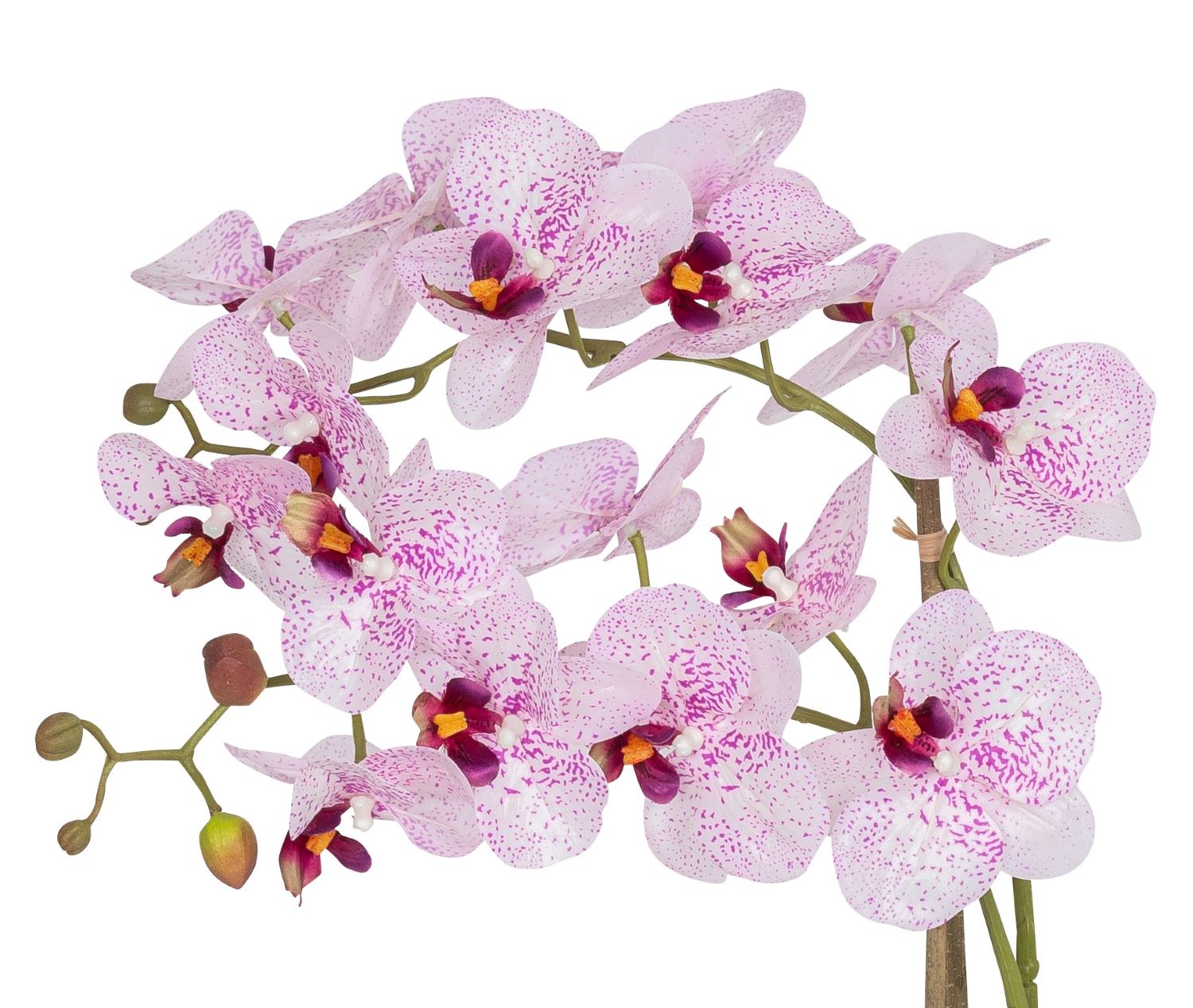 Phalaenopsis 2-fach im Topf 61cm Blütenkopf Ø ca. 8/9cm Topf: Höhe ca. 13,0cm Ø oben ca. 13,5cm Ø unten ca. 8,0cm Farbe: weiß-rose