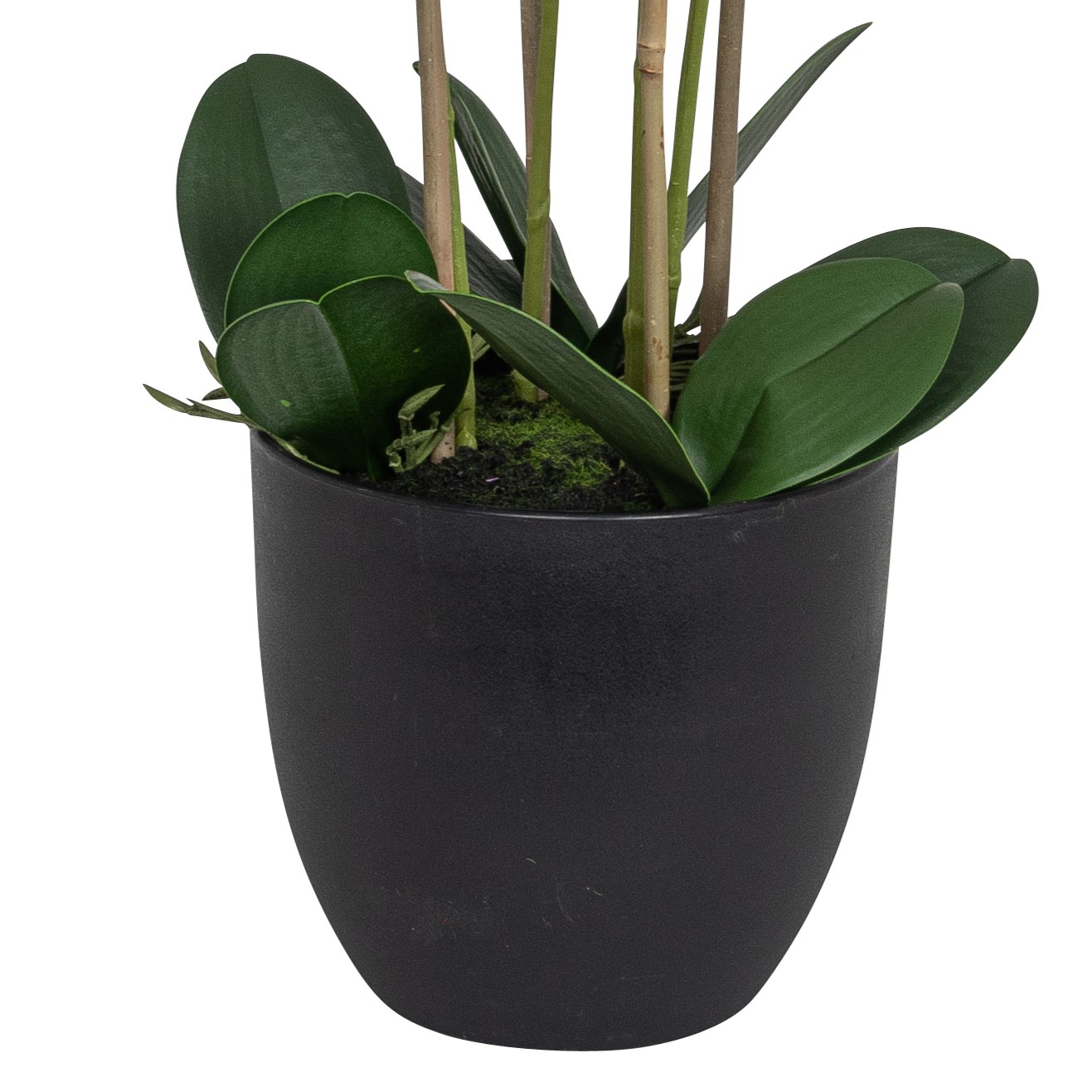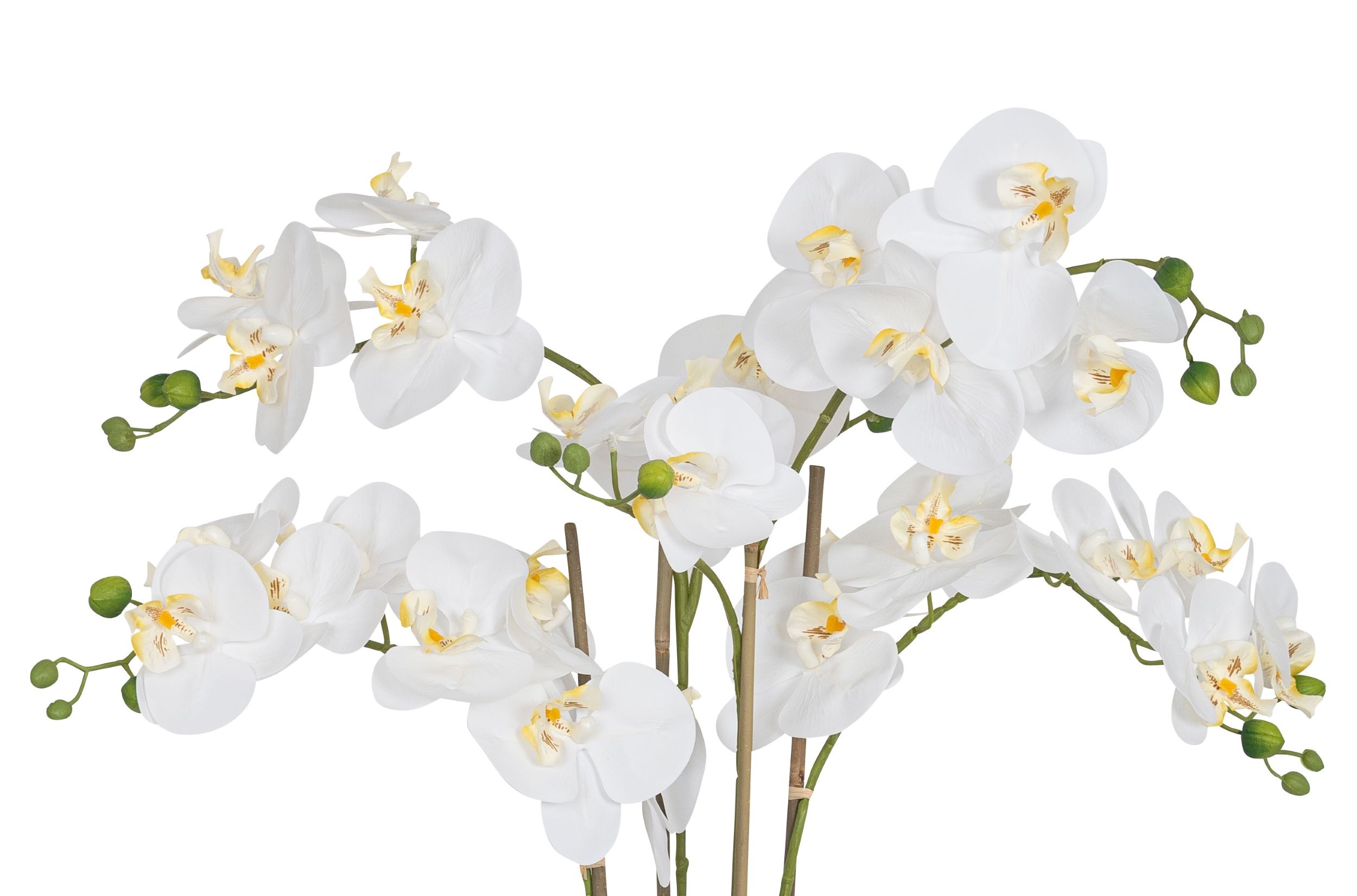 Phalaenopsis 4-fach im Topf 71cm Blütenkopf Ø ca. 8/11cm Topf: Höhe ca. 16,5cm Ø oben ca. 18,0cm Ø unten ca. 10,5cm Farbe: weiß-gelb