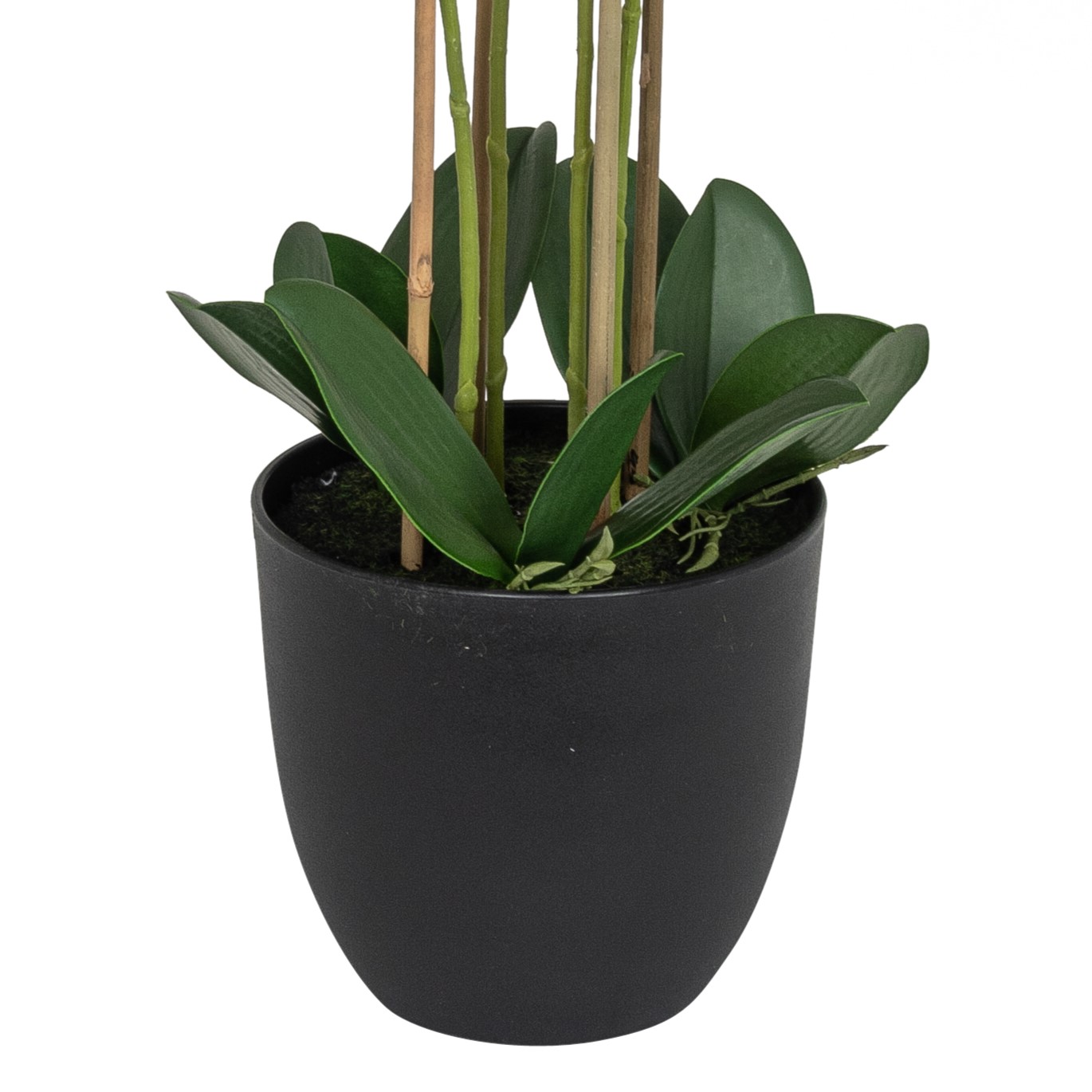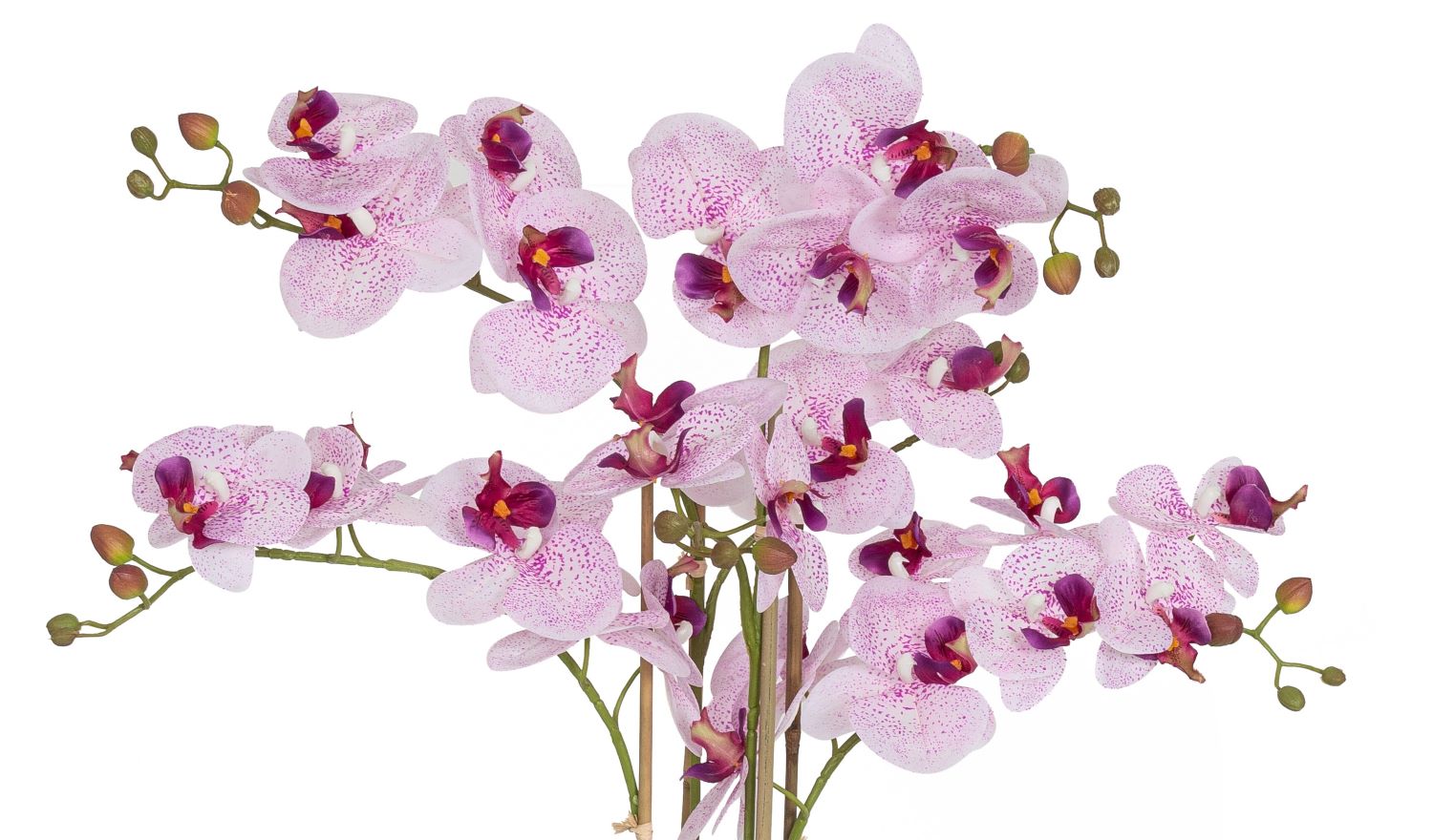 Phalaenopsis 4-fach im Topf 71cm Blütenkopf Ø ca. 8/11cm Topf: Höhe ca. 16,5cm Ø oben ca. 18,0cm Ø unten ca. 10,5cm Farbe: weiß-rose