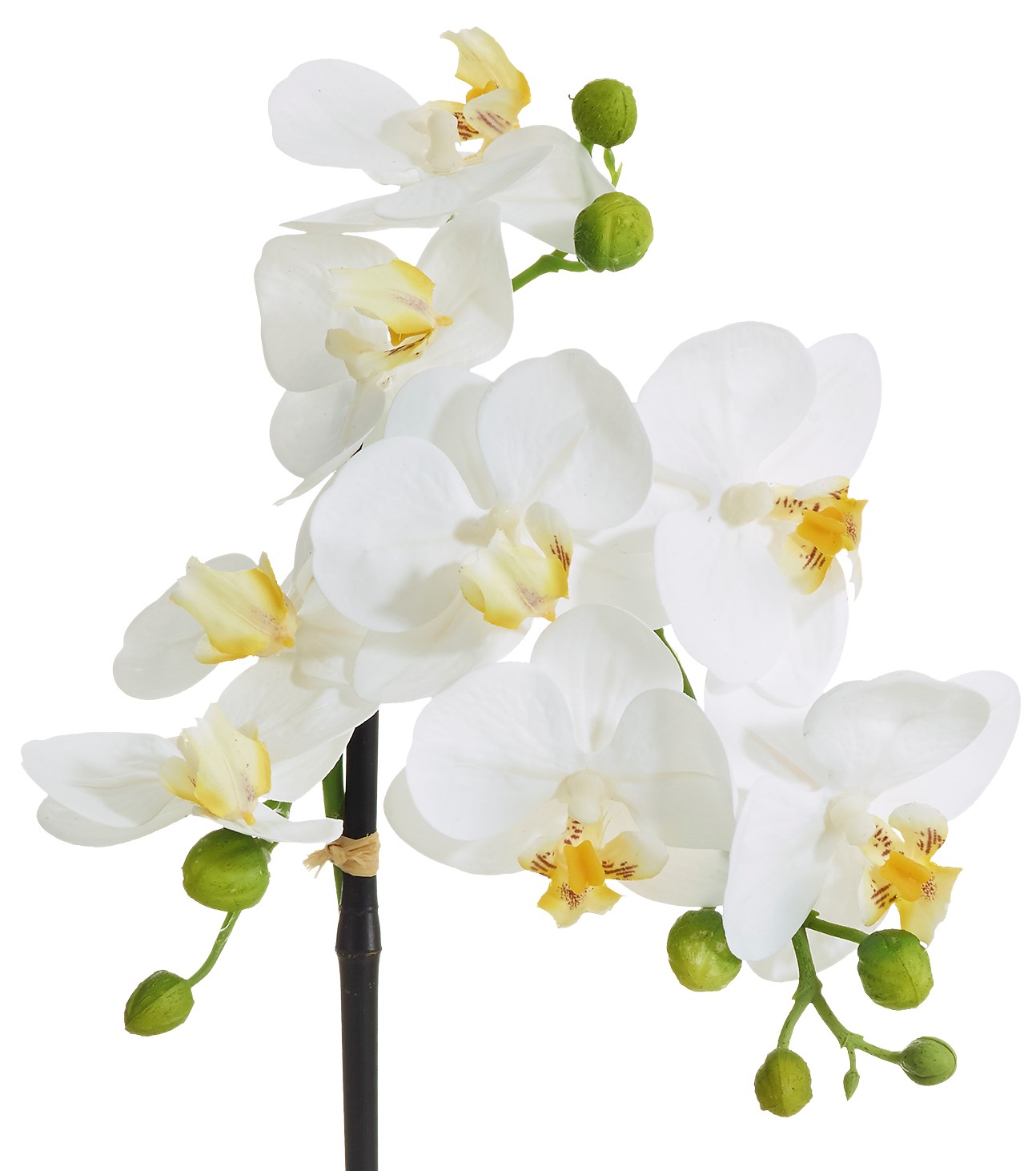 Die 38cm hohe, hochwertige Phalaenopsis im Topf in einem schönen Weiß-Gelb ist nicht nur ein Blickfang, sondern auch die perfekte Lösung für alle, die das Flair frischer Blumen ohne die Mühe der Pflege genießen möchten.