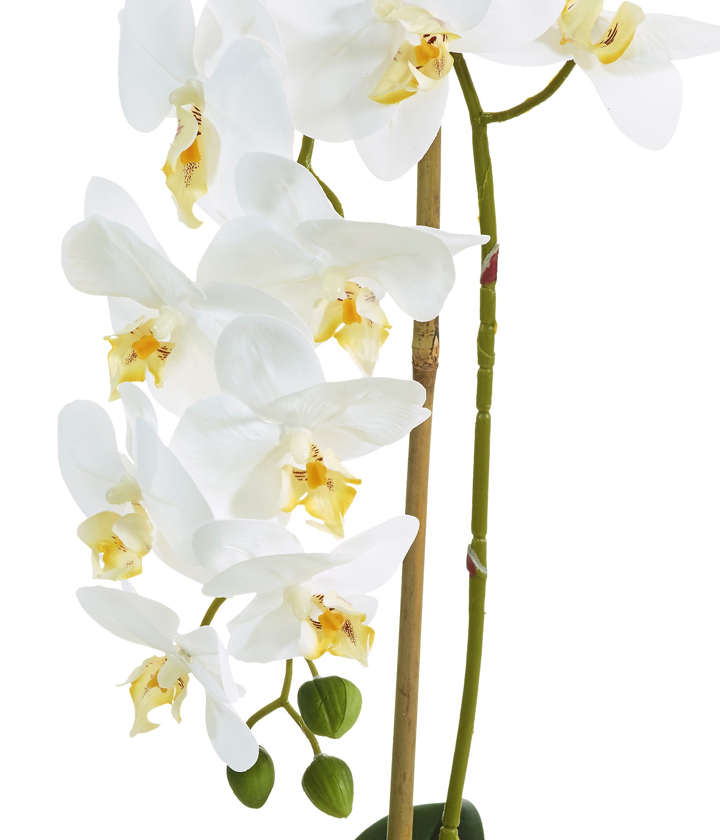 Die 53cm hohe, hochwertige Phalaenopsis im Topf in einem schönen Weiß-Gelb ist nicht nur ein Blickfang, sondern auch die perfekte Lösung für alle, die das Flair frischer Blumen ohne die Mühe der Pflege genießen möchten.