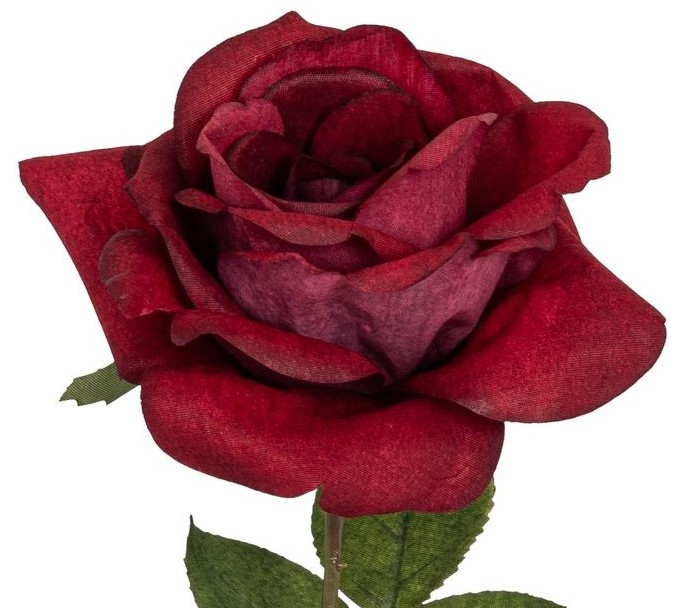 Die einzelne Prachtrose RE in der Farbe Burgund ist 63cm lang, hat einen Blütenkopfdurchmesser von ca. 15cm und eignet sich hervorragend für Dekorationen im Innenbereich.