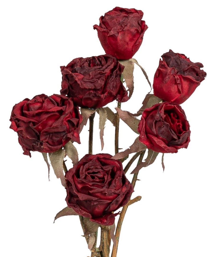 Röschenzweig x 6 52cm Blütenkopf Ø ca. 2,5/4cm Farbe: burgund