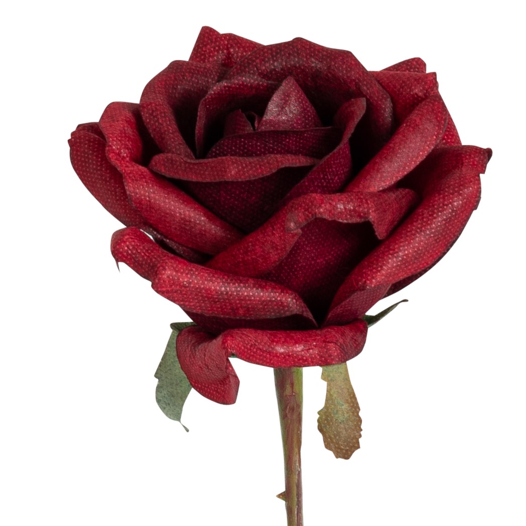 Die einzelne Rose RE in der Farbe Burgund ist 62cm lang, hat einen Blütenkopfdurchmesser von ca. 9cm und eignet sich hervorragend für Dekorationen im Innenbereich.