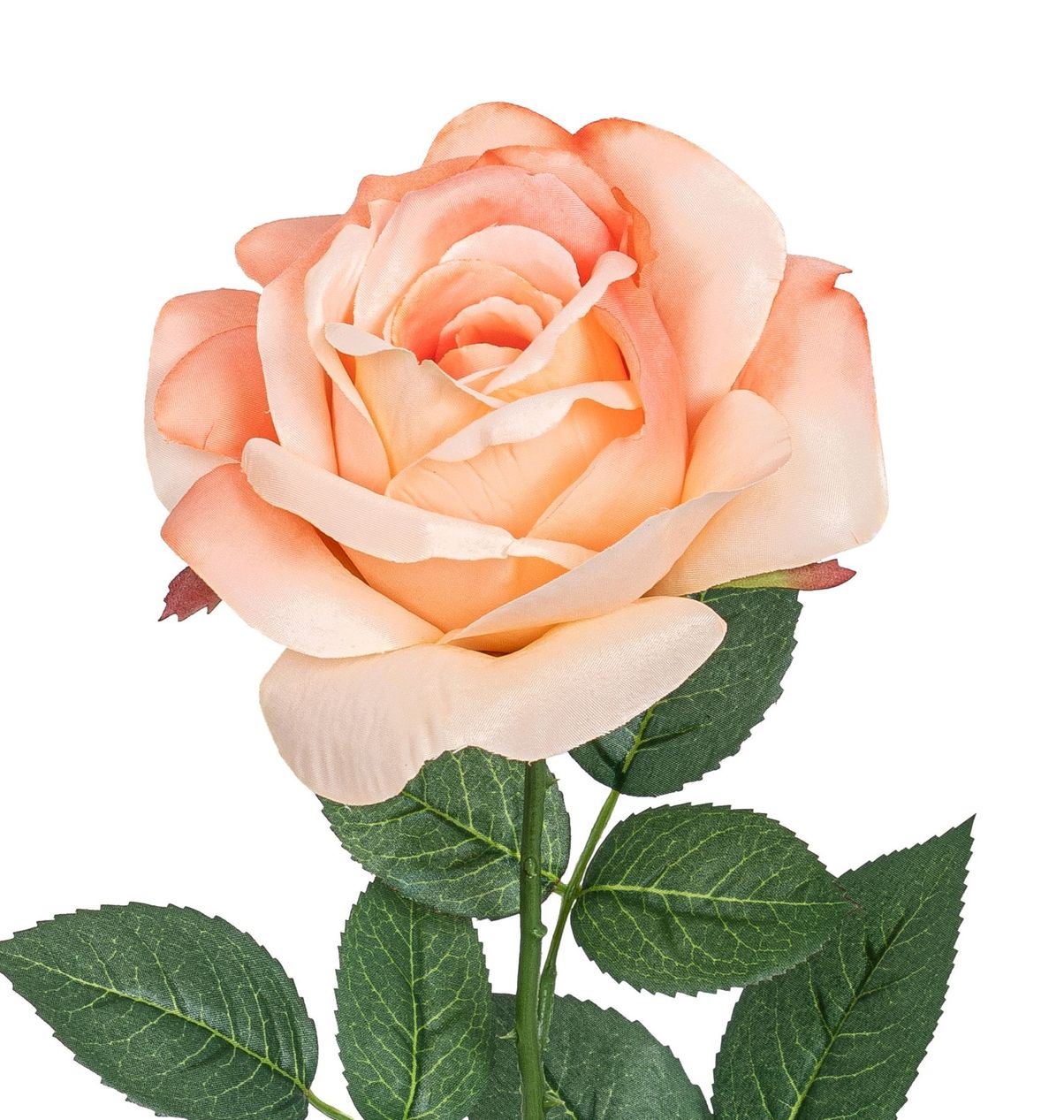Die Rose RE in der Farbe Lachs ist 63cm lang, hat einen Blütenkopfdurchmesser von ca. 13cm und eignet sich hervorragend für Dekorationen im Innenbereich.