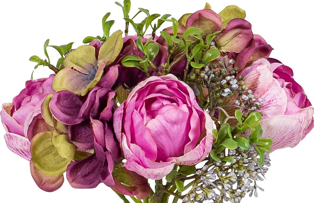Dieser künstliche Rosen-Hortensienstrauß ist eine stilvolle Bereicherung für jedes Interieur.