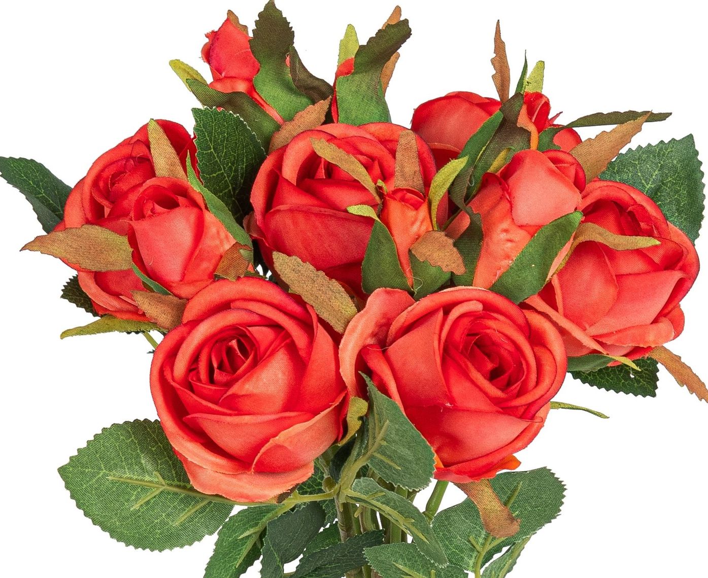 Rosenstrauß 6-fach 36cm Blütenkopf Ø ca. 1/2/5cm Farbe: orange-rot