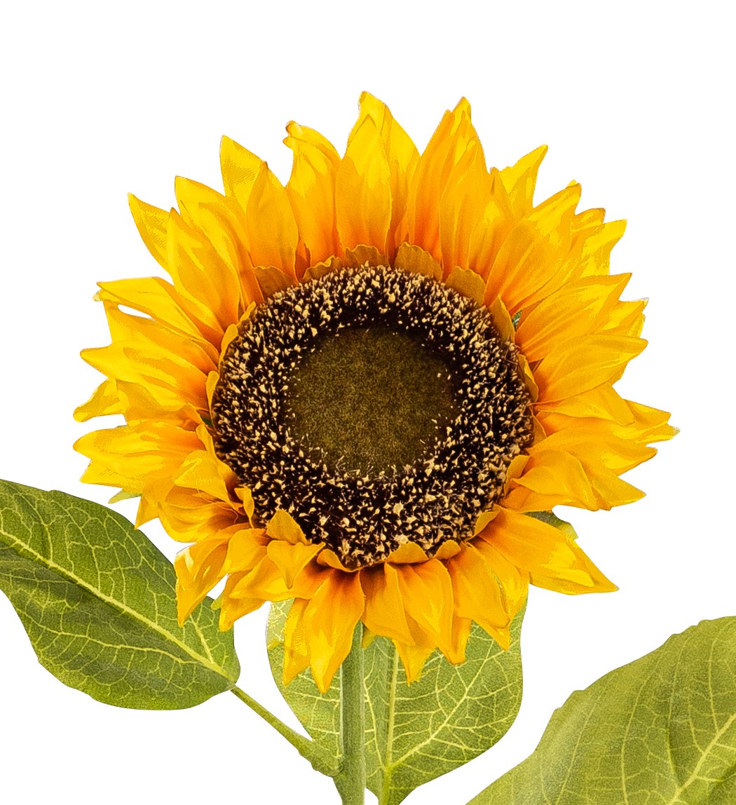 Die künstliche Sonnenblume in strahlendem Gelb ist 75cm lang und hat einen Blütenkopfdurchmesser von ca. 15cm.