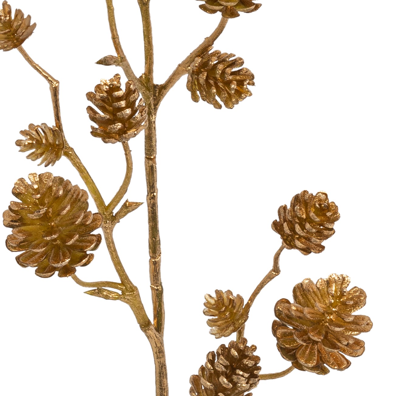 Zapfenzweig 3-fach 70cm Zapfen Ø ca. 1,5/2,5/4cm Farbe: gold