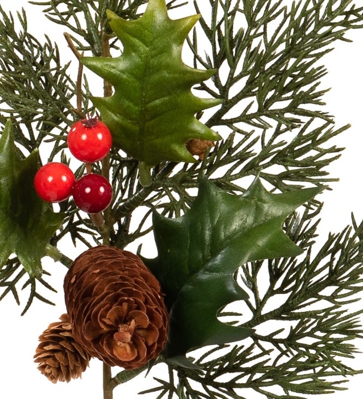 Zedern-Ilex-Zapfenzweig 54cm Farbe: grün-rot